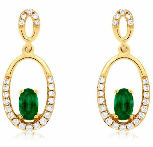 ESTATE .65CT DIAMOND & AAA EMERALD 14K YELLOW GOLD OVAL CLASSIC HANGING EARRINGS