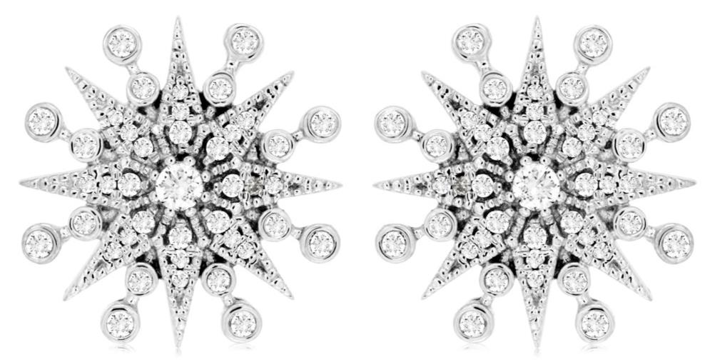 ESTATE .66CT DIAMOND 14KT WHITE GOLD 3D ROUND STAR SNOWFLAKE FLORAL FUN EARRINGS