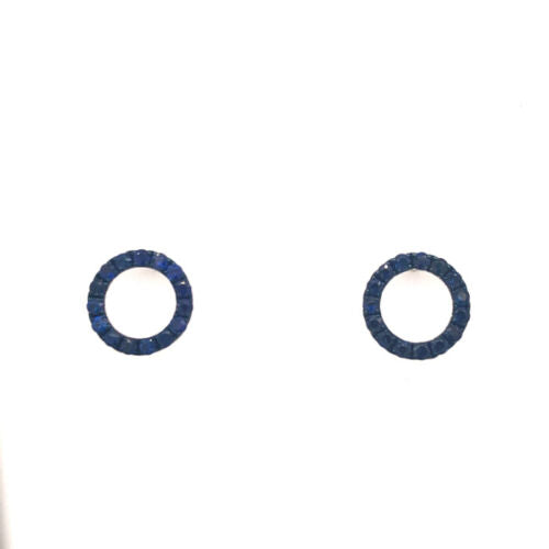 ESTATE .68CT AAA SAPPHIRE 18K WHITE GOLD CLASSIC OPEN CIRCULAR FUN STUD EARRINGS