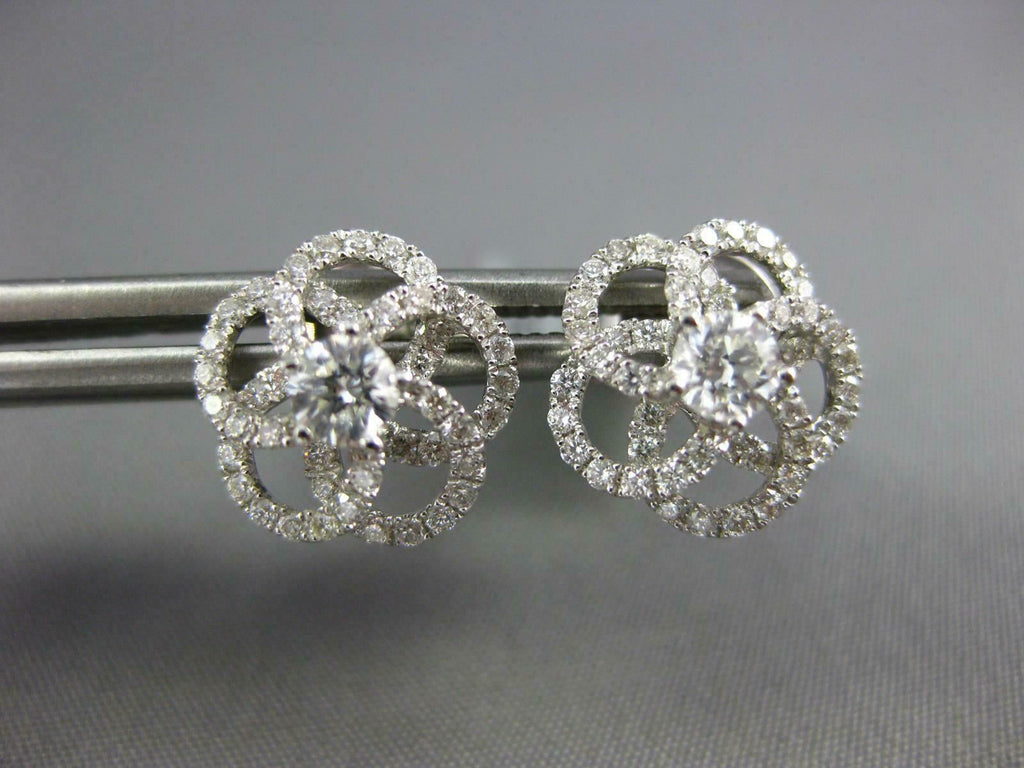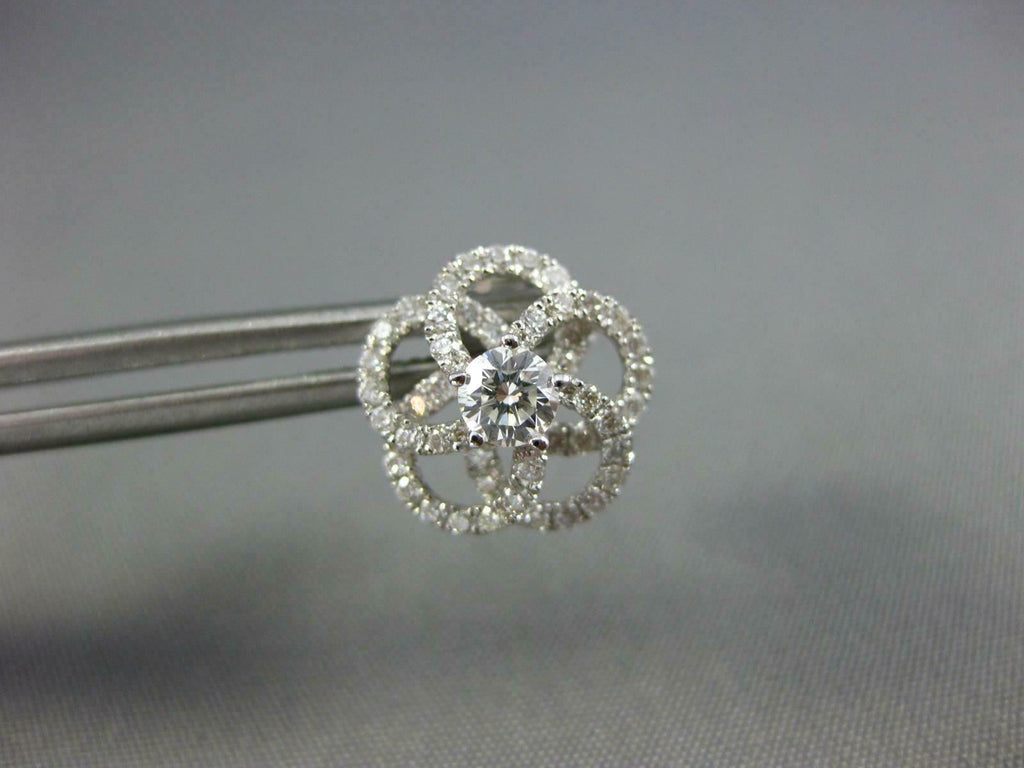 ESTATE .68CT DIAMOND 18KT WHITE GOLD 3D CLASSIC FLOWER SOLITAIRE STUD EARRINGS