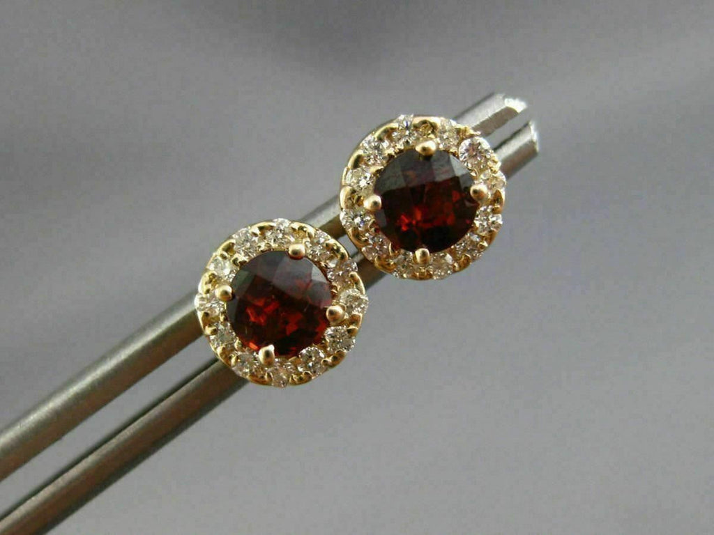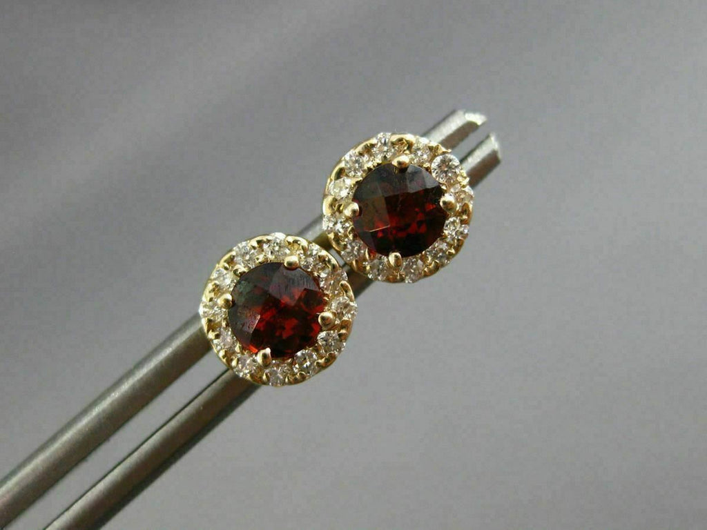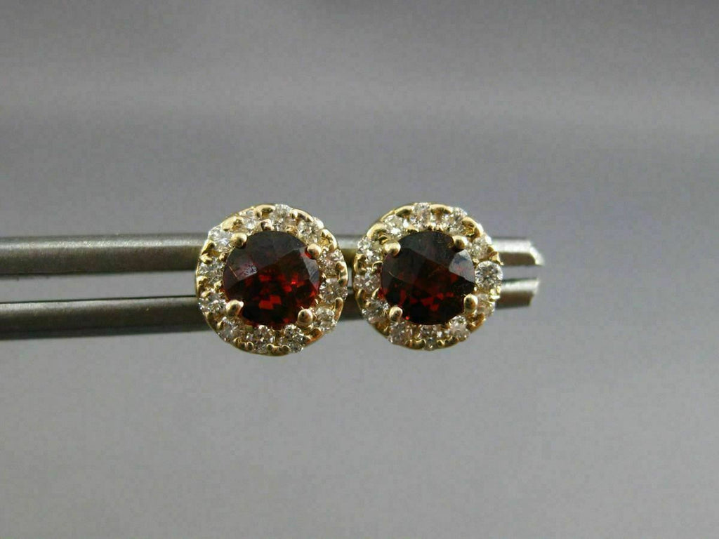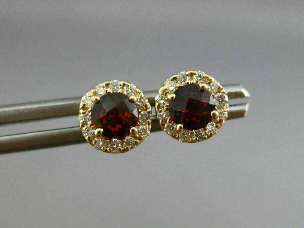 ESTATE 14KT YELLOW GOLD STUD EARRINGS. 3D CLASSIC ROUND HALO DESIGN. DIAMONDS ARE F/G COLOR, VSSI CLARITY, .18 CARATS. AAA EXTRA FACET GARNETS ARE .50 CARATS. MEASURES 6mm WIDE. WRITTEN APPRAISAL AVAILABLE. COMES IN A PRESENTABLE GIFT BOX.