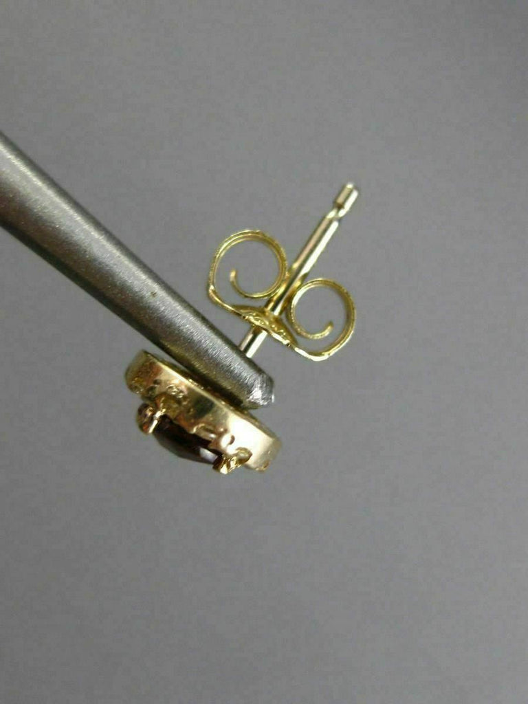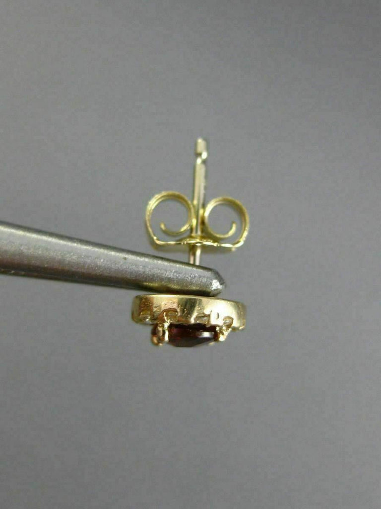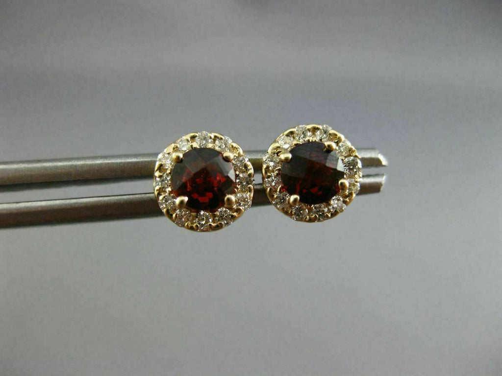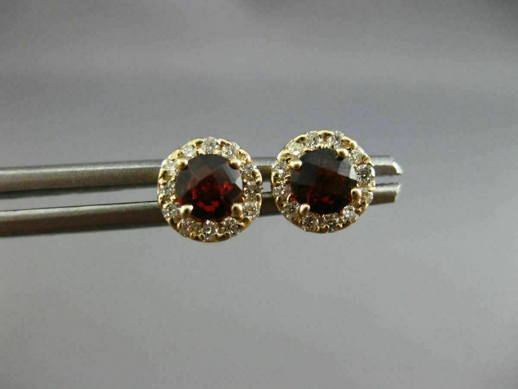 ESTATE 14KT YELLOW GOLD STUD EARRINGS. 3D CLASSIC ROUND HALO DESIGN. DIAMONDS ARE F/G COLOR, VSSI CLARITY, .18 CARATS. AAA EXTRA FACET GARNETS ARE .50 CARATS. MEASURES 6mm WIDE. WRITTEN APPRAISAL AVAILABLE. COMES IN A PRESENTABLE GIFT BOX.