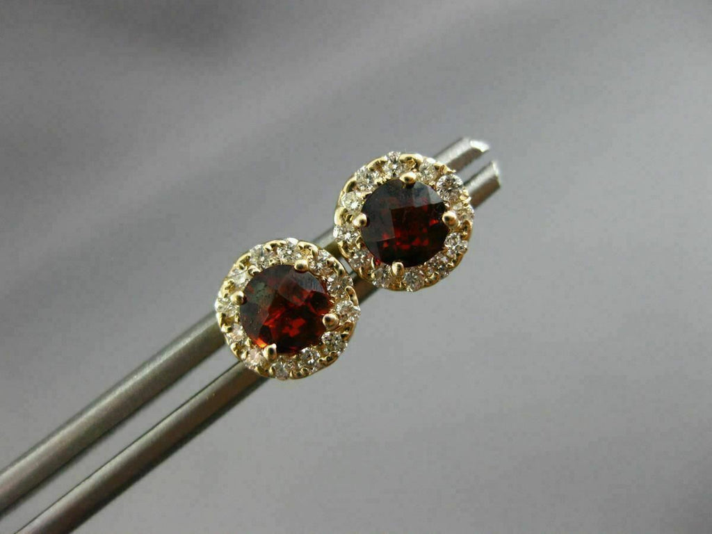 ESTATE .68CT DIAMOND & AAA GARNET 14KT YELLOW GOLD ROUND HALO STUD EARRINGS