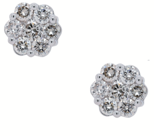 ESTATE .69CT DIAMOND 14K WHITE GOLD CLASSIC ROUND INVISIBLE FLOWER STUD EARRINGS