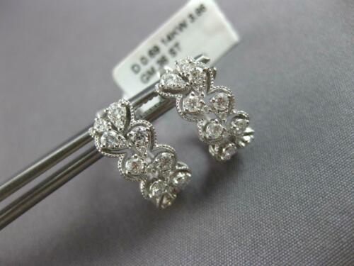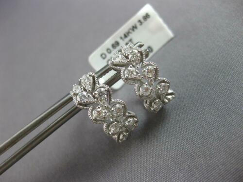 ESTATE .69CT DIAMOND 14KT WHITE GOLD ROUND MULTI LEAF FILIGREE HANGING EARRINGS