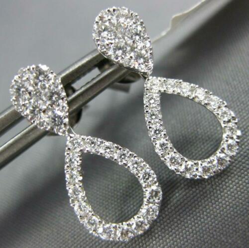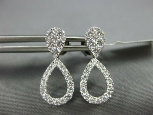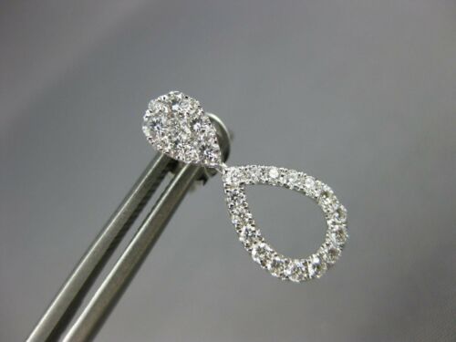 ESTATE .69CT DIAMOND 18KT WHITE GOLD 3D 2 IN 1 TEAR DROP STUD HANGING EARRINGS