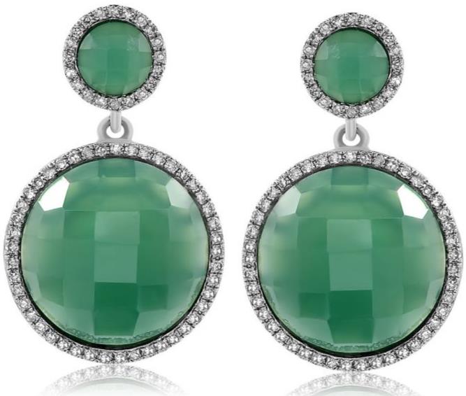 ESTATE 14KT WHITE GOLD HANGING EARRINGS. 3D ROUND DESIGN. DIAMONDS ARE F/G COLOR, VSSI CLARITY .41 CARATS. AAA EXTRA FACETED AGATES ARE 7.18 CARATS.WRITTEN APPRAISAL AVAILABLE. COMES IN A PRESENTABLE GIFT BOX.