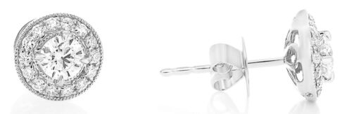 ESTATE .70CT DIAMOND 14KT WHITE GOLD ROUND CLASSIC FILIGREE FLOWER STUD EARRINGS