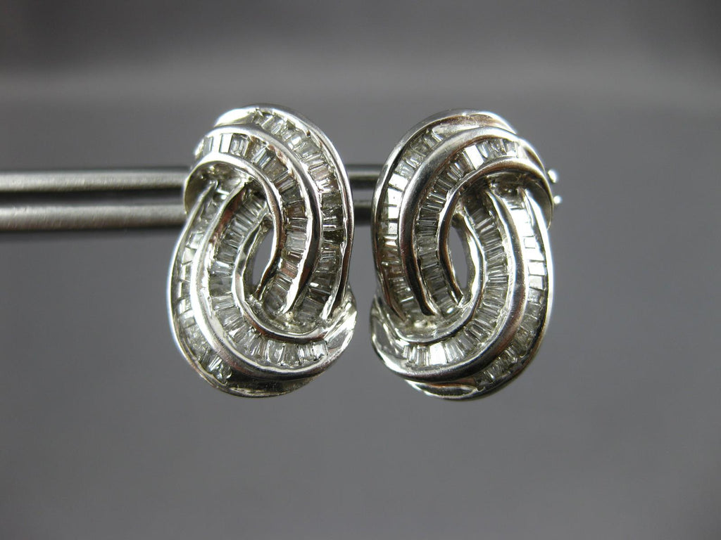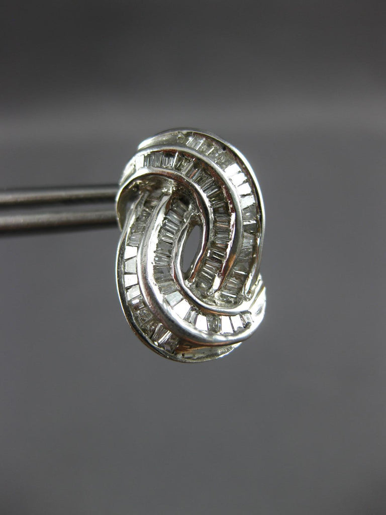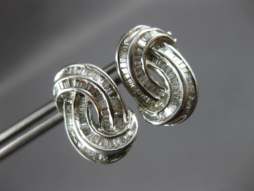 ESTATE 18KT WHITE GOLD STUD EARRINGS. 3D DOUBLE SWIRL CLASSIC DESIGN. BAGUETTE DIAMONDS ARE F/G COLOR, VSSI CLARITY .70 CARATS. MEASURES 17mm X 11mm. WRITTEN APPRAISAL AVAILABLE. COMES IN A PRESENTABLE GIFT BOX.