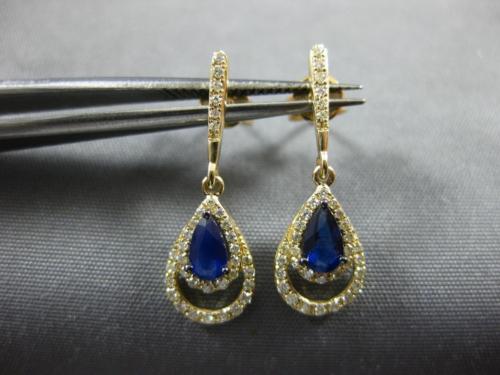 ESTATE .70CT DIAMOND & AAA SAPPHIRE 14KT YELLOW GOLD TEAR DROP HANGING EARRINGS