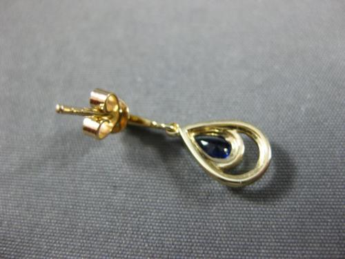 ESTATE 14KT YELLOW GOLD HANGING EARRINGS. 3D TEAR DROP DESIGN. DIAMONDS ARE F/G COLOR, VSSI CLARITY .20 CARATS. AAA SAPPHIRES ARE .50 CARATS. MEASURES 20mm X 7mm. WRITTEN APPRAISAL AVAILABLE. COMES IN A PRESENTABLE GIFT BOX.