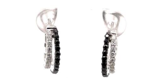 ESTATE .70CT WHITE & BLACK DIAMOND 18K WHITE GOLD UMBRELLA HOOP HANGING EARRINGS