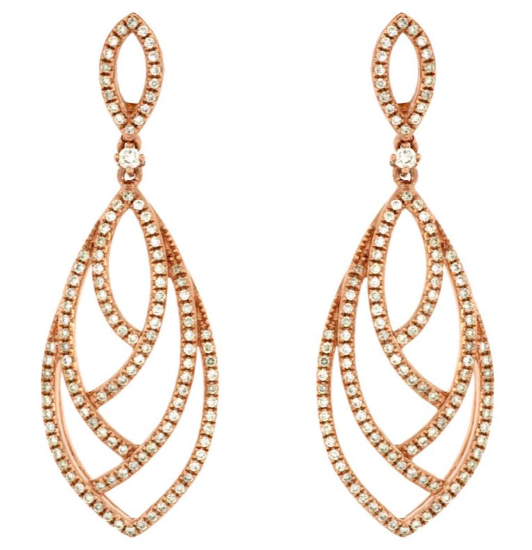 ESTATE .71CT DIAMOND 14KT ROSE GOLD 3D TEAR DROP MULTI LEAF HANGING EARRINGS