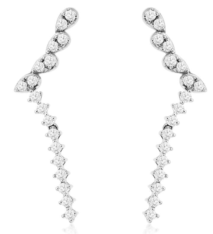 ESTATE 14KT WHITE GOLD FUN HANGING EARRINGS. 3D TEAR DROP V SHAPE DESIGN. ROUND DIAMONDS ARE F/G COLOR, VSSI CLARITY .75 CARATS. WRITTEN APPRAISAL AVAILABLE. COMES IN A PRESENTABLE GIFT BOX.
