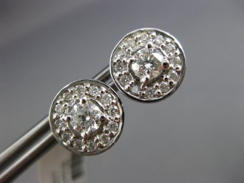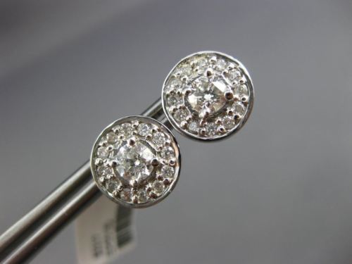 ESTATE .75CT DIAMOND 14KT WHITE GOLD CLASSIC SOLITAIRE ROUND HALO STUD EARRINGS