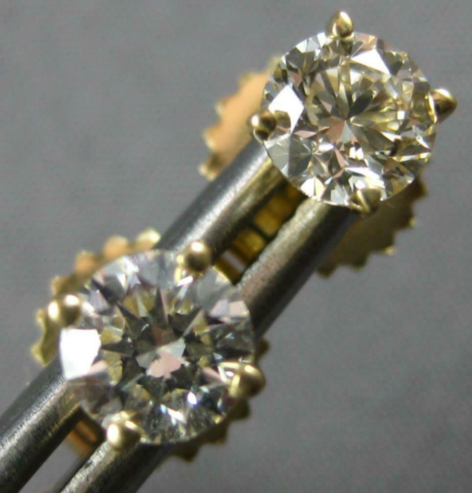 ESTATE .75CT DIAMOND 14KT YELLOW GOLD 3D CLASSIC ROUND FOUR PRONG STUD EARRINGS