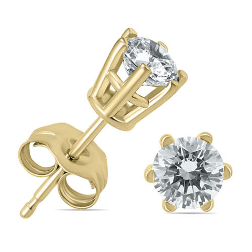 ESTATE .75CT DIAMOND 14KT YELLOW GOLD 3D CLASSIC ROUND SIX PRONG STUD EARRINGS