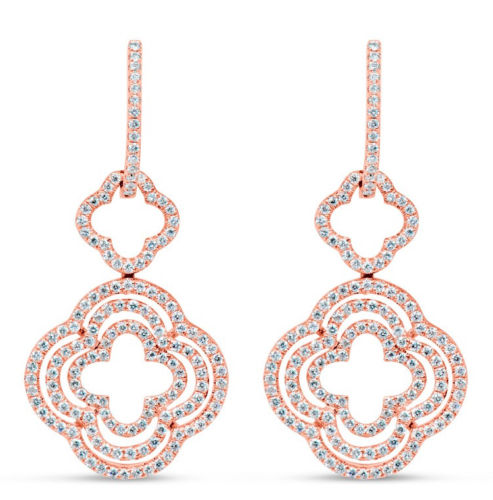 ESTATE 18KT ROSE GOLD HANGING EARRINGS. 3D CLASSIC FOUR LEAF CLOVER DESIGN. DIAMONDS ARE F/G COLOR, VSSI CLARITY  .75 CARATS. WRITTEN APPRAISAL AVAILABLE. COMES IN A PRESENTABLE GIFT BOX.