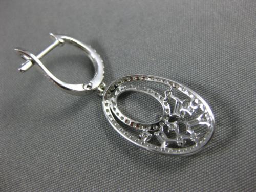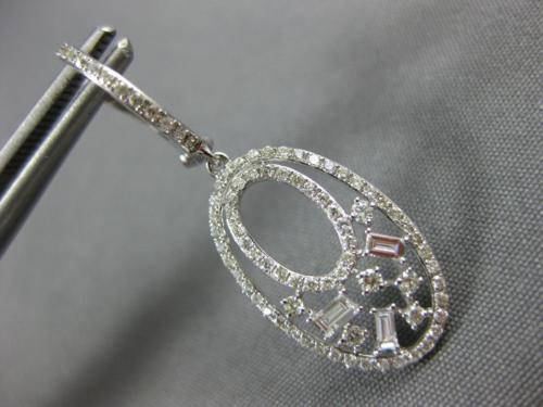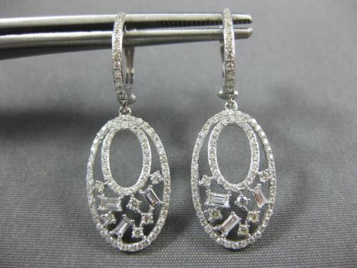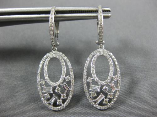 ESTATE .75CT ROUND AND BAGUETTE DIAMOND 14KT WHITE GOLD 3D OVAL HANGING EARRINGS