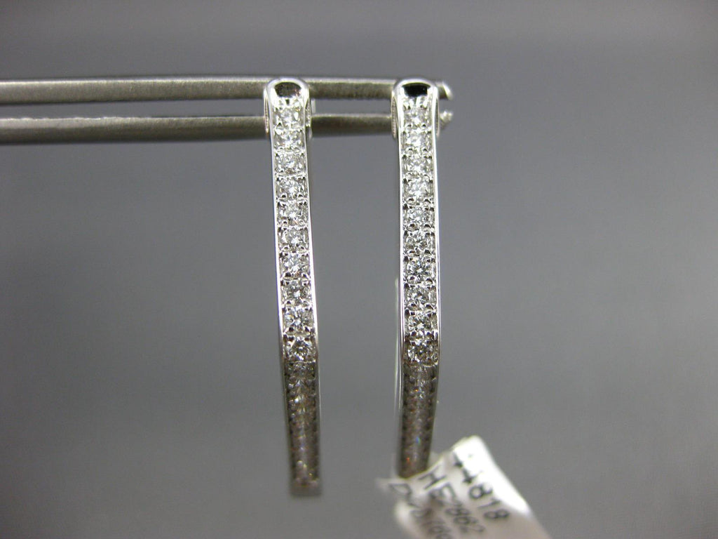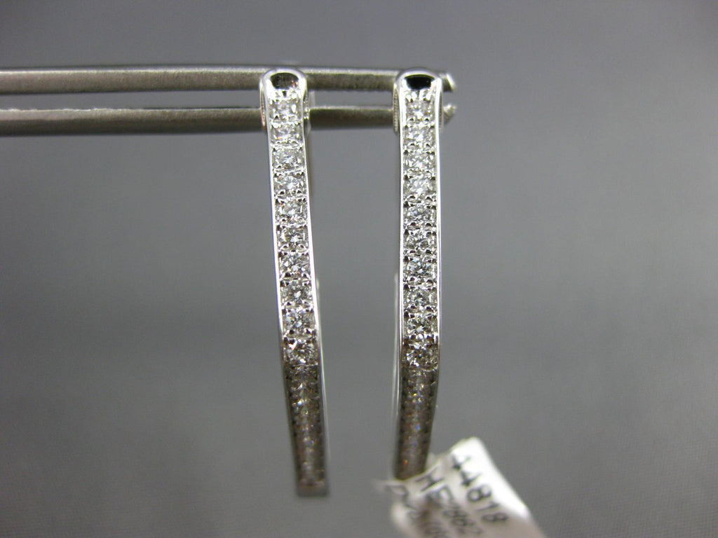 ESTATE18KT WHITEGOLDHOOP HANGING EARRINGS. 3D INSIDE OUT PENTAGONDESIGN. DIAMONDS ARE F/G COLOR, VSSI CLARITY .76CARATS.MEASURES 28mm X 3mm. WRITTEN APPRAISAL AVAILABLE. COMES IN A PRESENTABLE GIFT BOX.