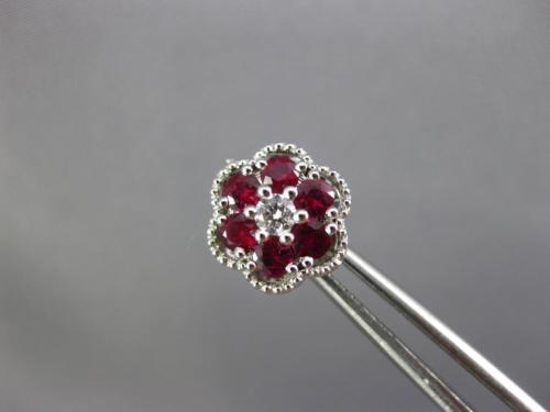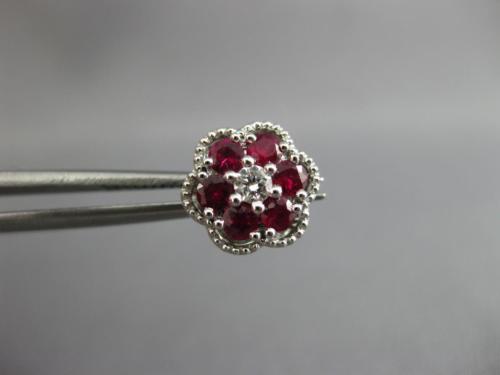 ESTATE .77CT DIAMOND & AAA RUBY 18KT WHITE GOLD 3D FLOWER FILIGREE STUD EARRINGS