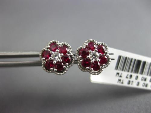 ESTATE 18KT WHITE GOLD STUD EARRINGS. 3D FLOWER FILIGREE MILGRAIN DESIGN. DIAMONDS ARE F/G COLOR, VSSI CLARITY .10 CARATS. AAA RUBIES ARE .67 CARATS. MEASURES 9mm WIDE. WRITTEN APPRAISAL AVAILABLE. COMES IN A PRESENTABLE GIFT BOX.