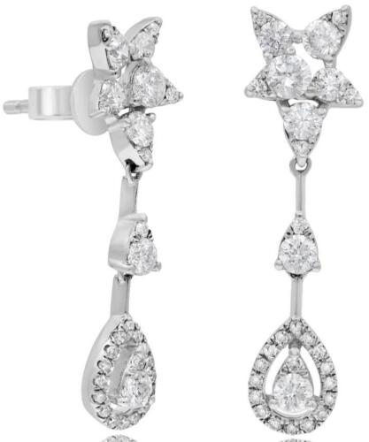 ESTATE .78CT DIAMOND 14K WHITE GOLD 3D ROUND TEAR DROP STAR FUN HANGING EARRINGS