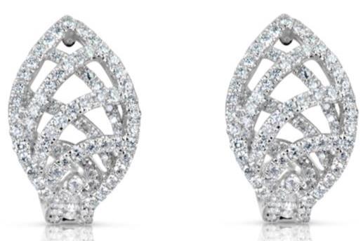 ESTATE 14KT WHITE GOLD FUN HANGING EARRINGS. 3D LEAF CRISS CROSS DESIGN. DIAMONDS ARE F/G COLOR, VSSI CLARITY .78 CARATS. MEASURES 10mm WIDE. WRITTEN APPRAISAL AVAILABLE. COMES IN A PRESENTABLE GIFT BOX.