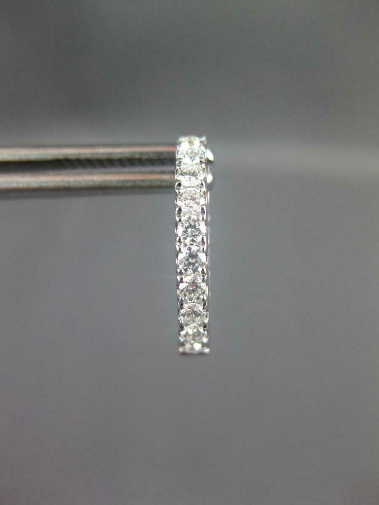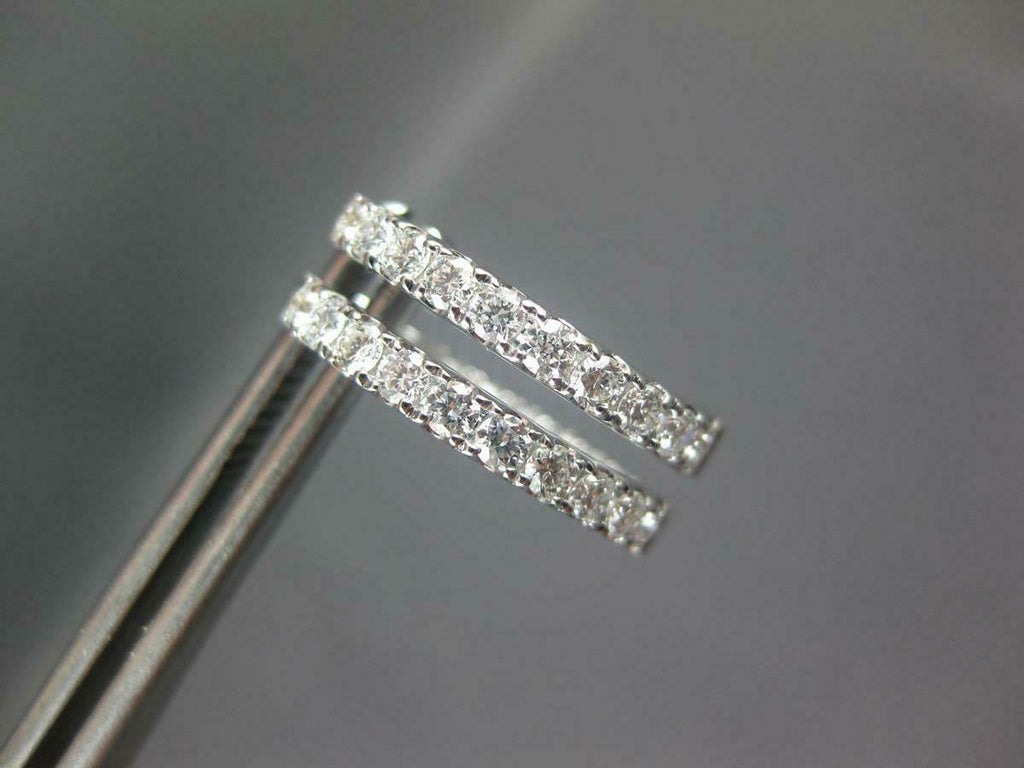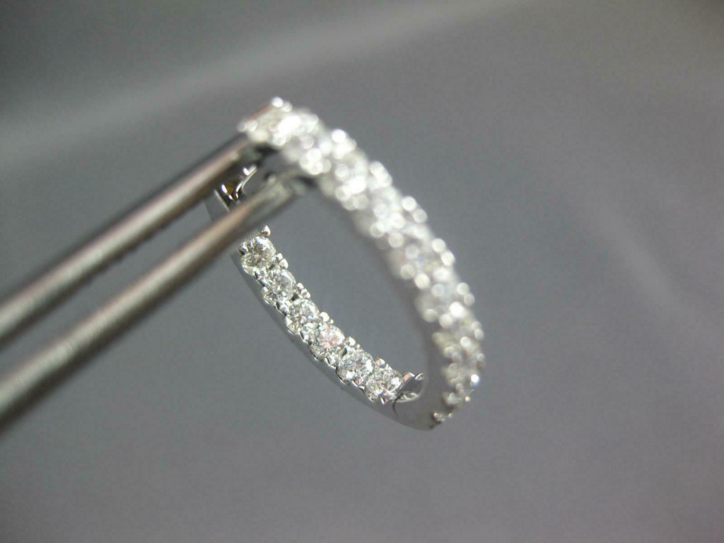ESTATE 18KT WHITE GOLD HUGGIE HANGING EARRINGS. 3D CLASSIC INSIDE OUT DESIGN. DIAMONDS ARE F/G COLOR, VSSI CLARITY .78 CARATS. MEASURES 16.5MM X 2.5MM. WRITTEN APPRAISAL AVAILABLE. COMES IN A PRESENTABLE GIFT BOX.