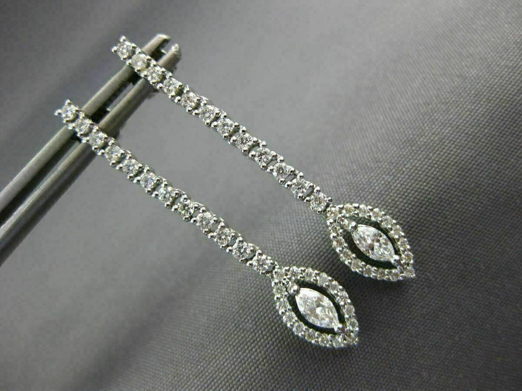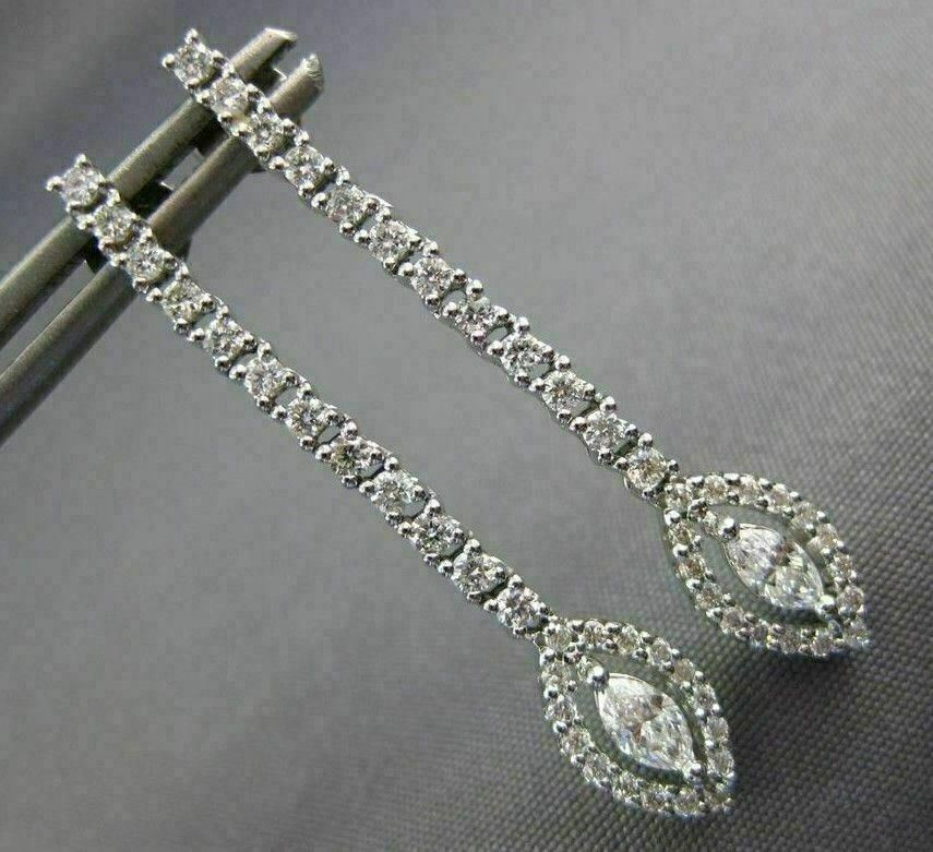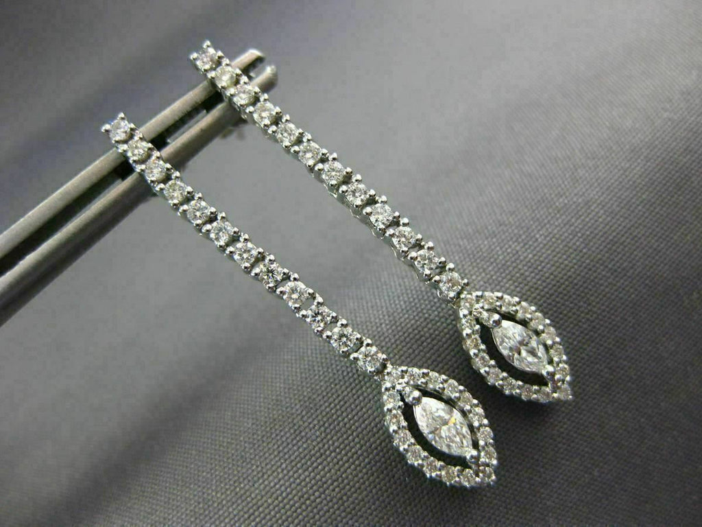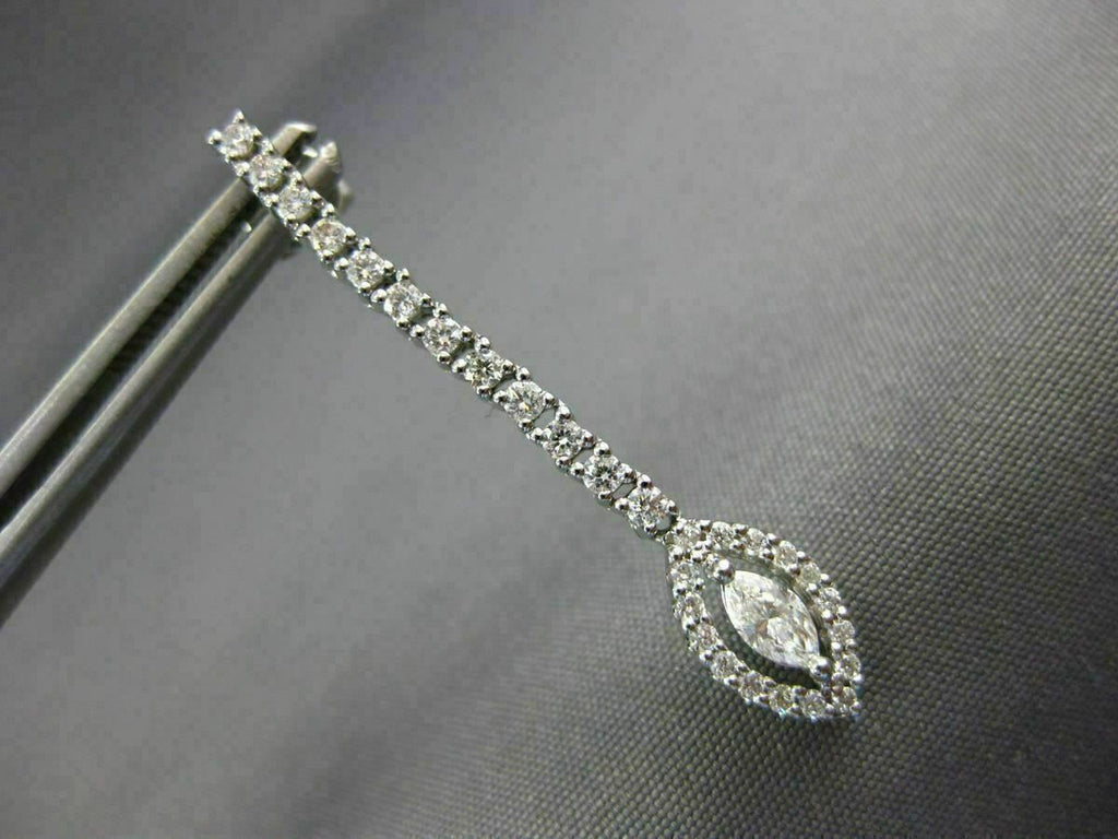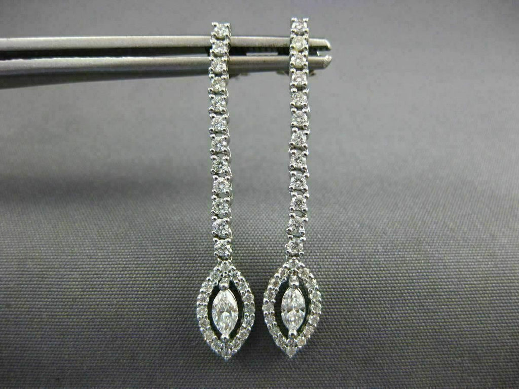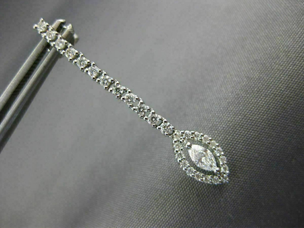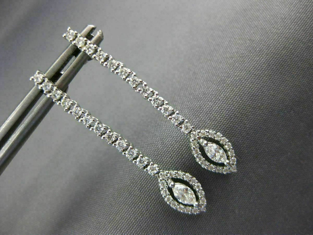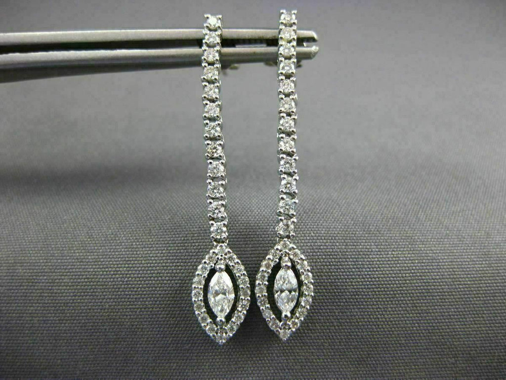 ESTATE .78CT ROUND & MARQUISE DIAMOND 18K WHITE GOLD 3D CLASSIC HANGING EARRINGS