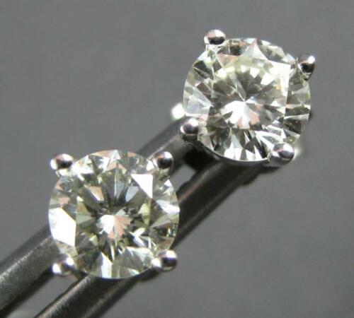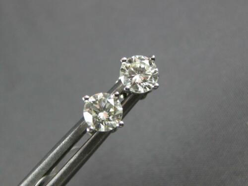 ESTATE .79CT DIAMOND 18KT WHITE GOLD 3D CLASSIC ROUND FOUR PRONG STUD EARRINGS