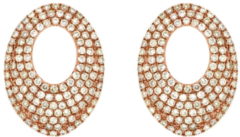 ESTATE 14KT ROSEGOLD STUDEARRINGS. 3D CLASSIC MULTI ROW OVALDESIGN. DIAMONDS ARE F/G COLOR, VSSI CLARITY 0.70 CARATS. WRITTEN APPRAISAL AVAILABLE. COMES IN A PRESENTABLE GIFT BOX.