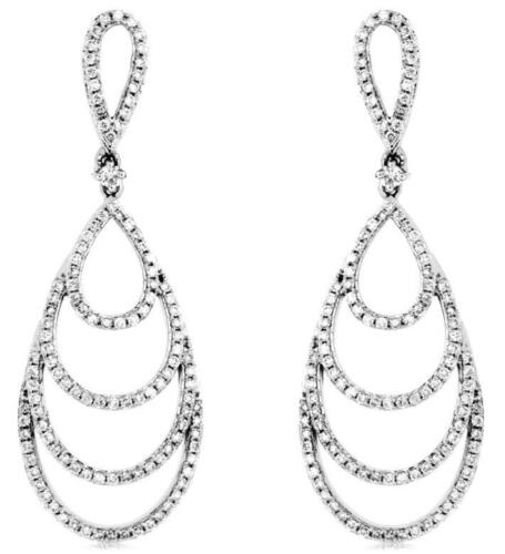 ESTATE 14KT WHITE GOLD FUN HANGING EARRINGS. 3D CLASSIC MULTI TEAR DROP DESIGN. DIAMONDS ARE F/G COLOR, VSSI CLARITY .80 CARATS. WRITTEN APPRAISAL AVAILABLE. COMES IN A PRESENTABLE GIFT BOX.