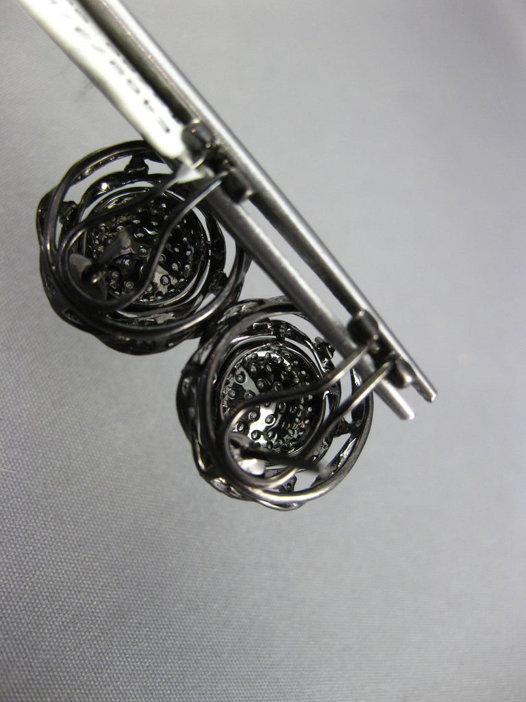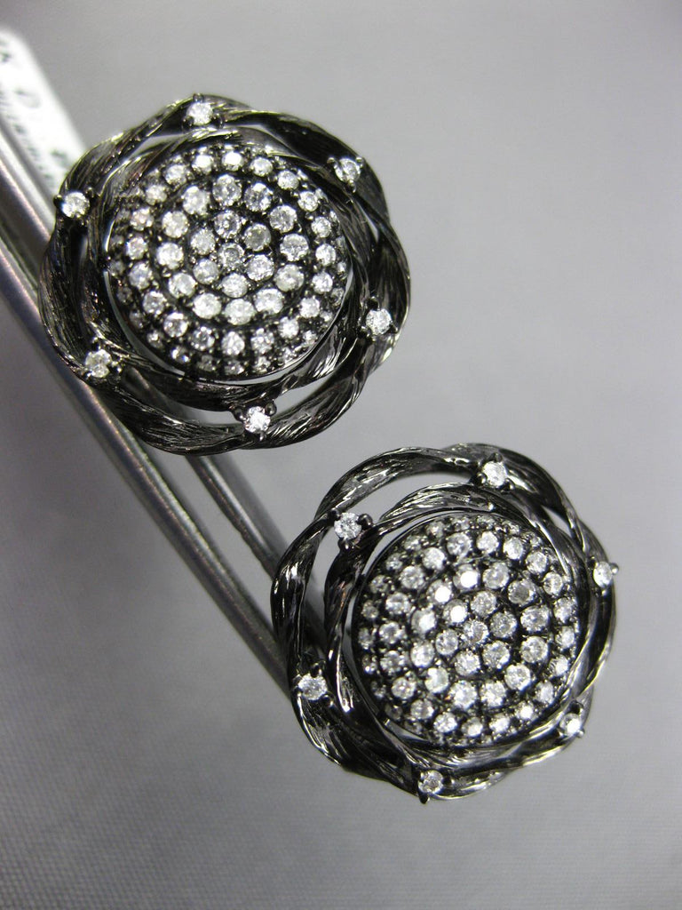ESTATE .80CT DIAMOND 14KT BLACK GOLD 3D CLUSTER FLOWER CLIP ON FUN EARRINGS