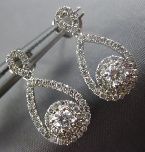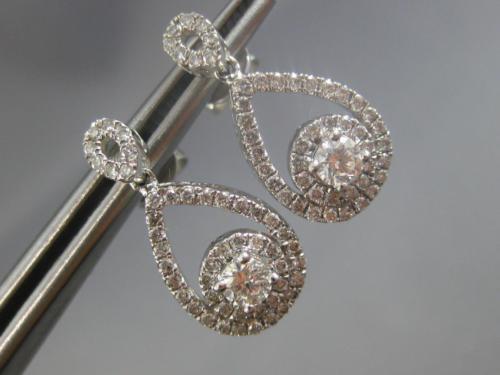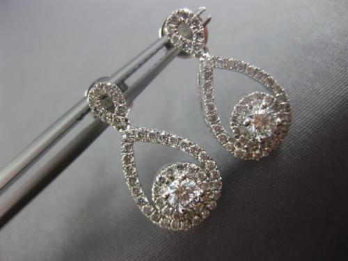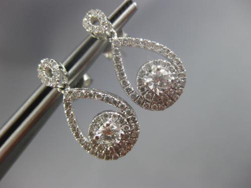 ESTATE 14KT WHITE GOLD HANGING EARRINGS. 3D SOLITAIRE INFINITY FLOWER DESIGN. DIAMONDS ARE F/G COLOR, VSSI CLARITY .80 CARATS. MEASURES 17mm X 9mm. WRITTEN APPRAISAL AVAILABLE. COMES IN A PRESENTABLE GIFT BOX.