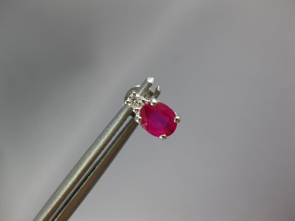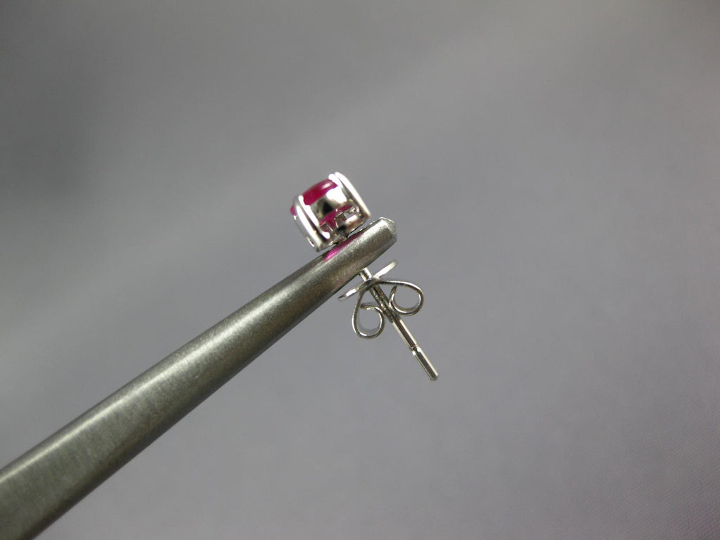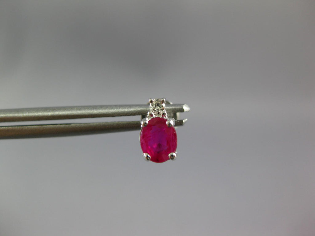 ESTATE 14KT WHITE GOLD STUD EARRINGS. 3D CLASSIC DESIGN. ROUND DIAMONDS ARE F/G COLOR, VSSI CLARITY .04 CARATS. AAA OVAL RUBIES ARE .76 CARATS. MEASURES 7mm X 4mm. WRITTEN APPRAISAL AVAILABLE. COMES IN A PRESENTABLE GIFT BOX.
