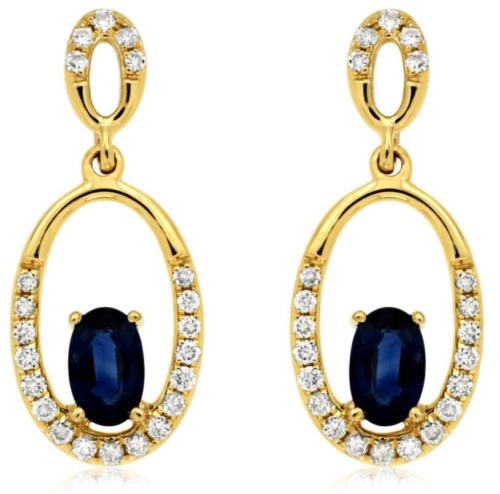 ESTATE 14KT YELLOW GOLD HANGING EARRINGS. 3D OVAL ETOILE CLASSIC DESIGN. DIAMONDS ARE F/G COLOR, VSSI CLARITY .20 CARATS. AAA SAPPHIRES ARE .60 CARATS. WRITTEN APPRAISAL AVAILABLE. COMES IN A PRESENTABLE GIFT BOX.