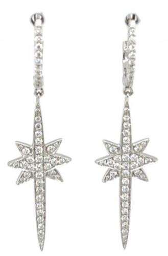 ESTATE .81CT DIAMOND 18KT WHITE GOLD CLASSIC ELONGATED STAR FUN HANGING EARRINGS