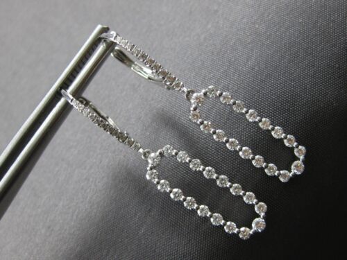 ESTATE 14KT WHITE GOLD LEVERBACK HANGING EARRINGS. 3D CLASSIC OPEN OVAL DESIGN. DIAMONDS ARE F/G COLOR, VSSI CLARITY .83 CARATS. MEASURES 33.5mm X 6.5mm. WRITTEN APPRAISAL AVAILABLE. COMES IN A PRESENTABLE GIFT BOX.