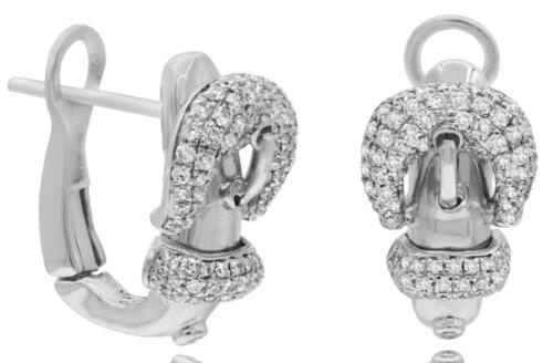 ESTATE .83CT DIAMOND 14KT WHITE GOLD 3D BELT FUN CLIP ON HANGING EARRINGS