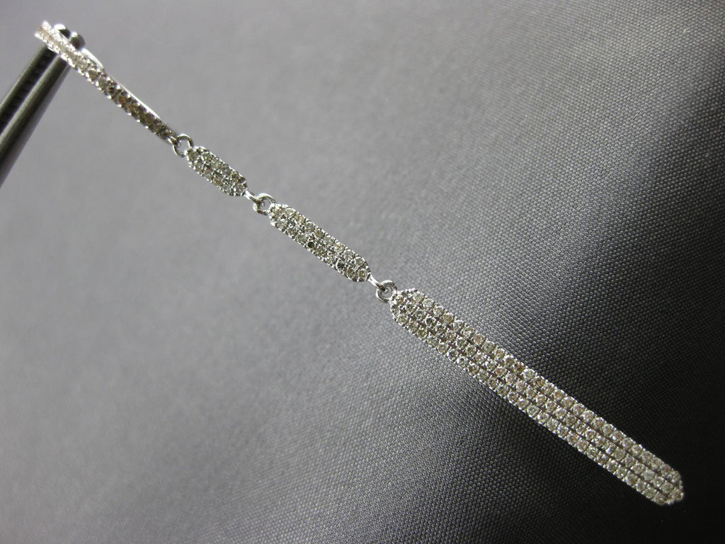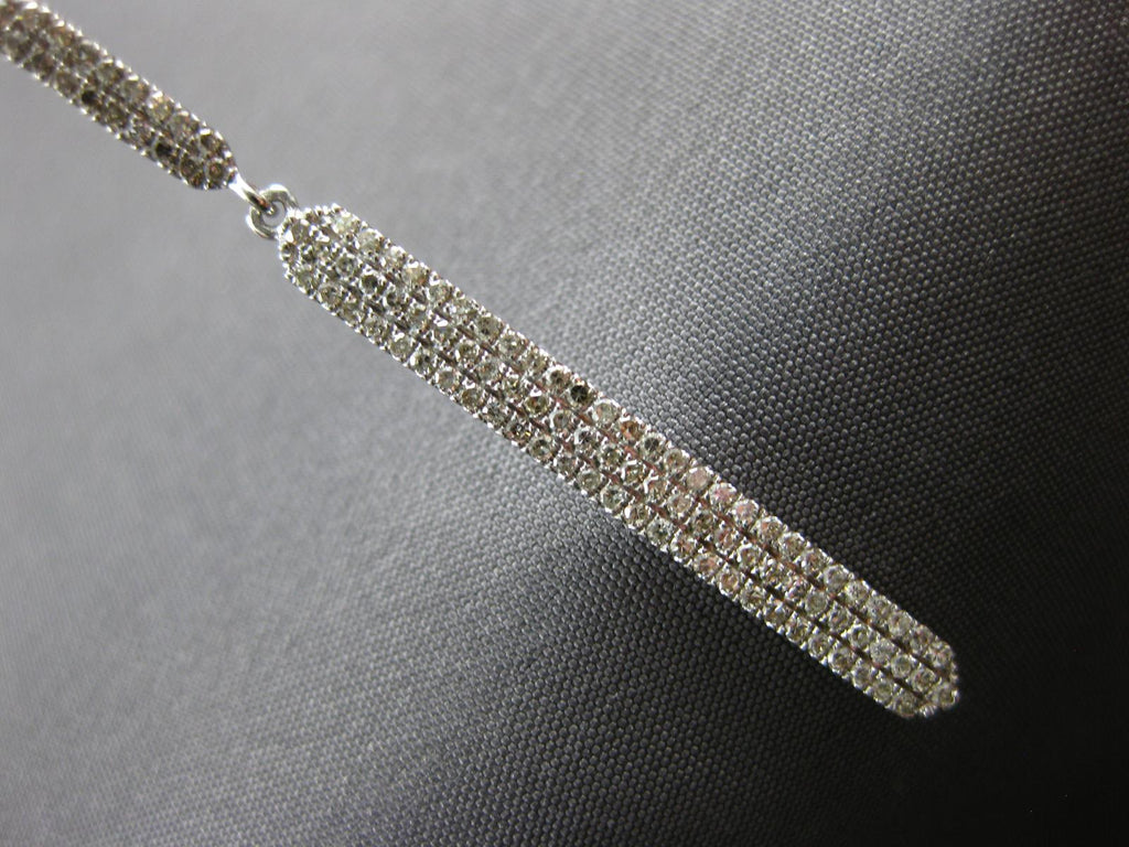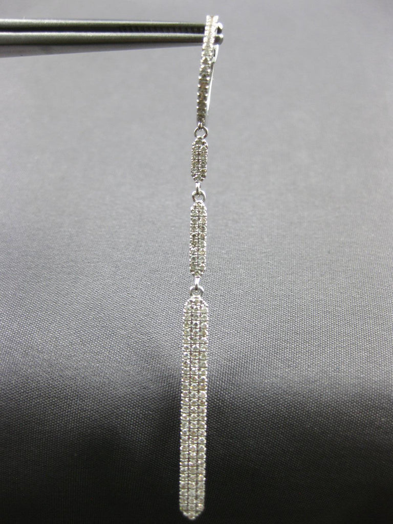 ESTATE .83CT DIAMOND 14KT WHITE GOLD 3D PAVE BAR JOURNEY HUGGIE HANGING EARRINGS