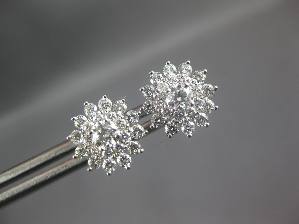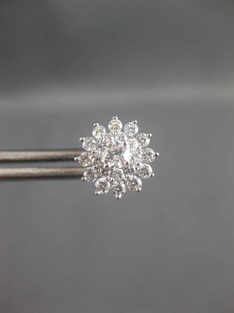 ESTATE .83CT DIAMOND 18KT WHITE GOLD 3D CLASSIC FLOWER STUD EARRINGS