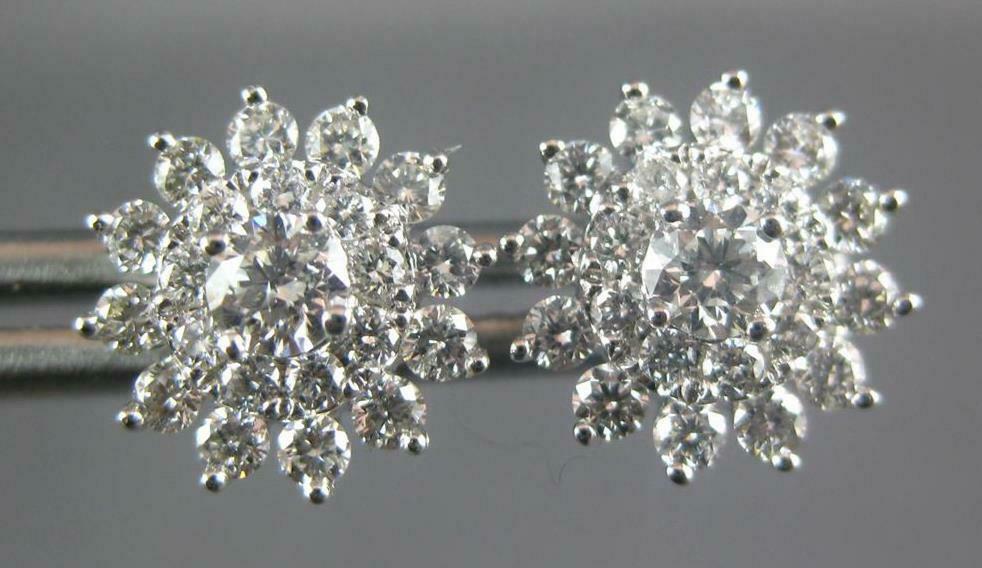 ESTATE 18KT WHITE GOLD STUD EARRINGS. 3D CLASSIC FLOWER DESIGN. DIAMONDS ARE F/G COLOR, VSSI CLARITY .83 CARATS. MEASURES 9.5MM WIDE. WRITTEN APPRAISAL AVAILABLE. COMES IN A PRESENTABLE GIFT BOX.