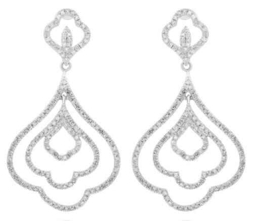 ESTATE 14KT WHITE GOLD HANGING EARRINGS. 3D CLASSIC MULTI TEAR DROP CHANDELIER DESIGN. DIAMONDS ARE F/G COLOR, VSSI CLARITY .85 CARATS. WRITTEN APPRAISAL AVAILABLE. COMES IN A PRESENTABLE GIFT BOX.