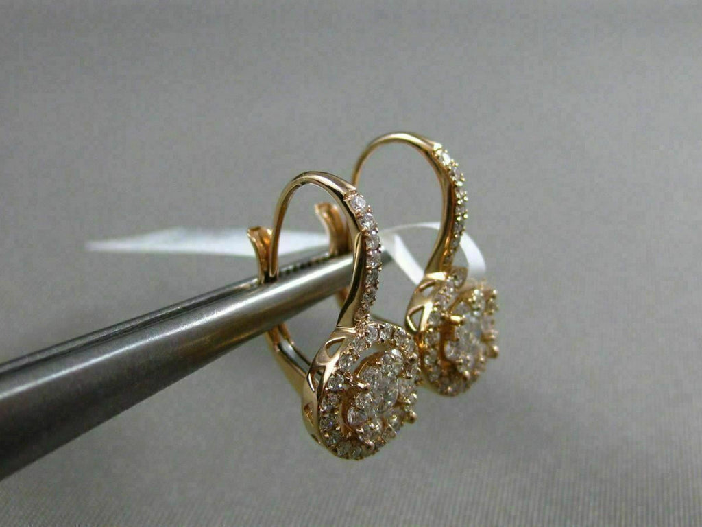 ESTATE .86CT DIAMOND 18K ROSE GOLD 3D CLUSTER CLASSIC LEVERBACK HANGING EARRINGS