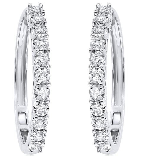 ESTATE 14KT WHITEGOLD HOOPEARRINGS. 3D CLASSIC ROUNDDESIGN. DIAMONDS ARE F/G COLOR, VSSI CLARITY .87CARATS.WRITTEN APPRAISAL AVAILABLE. COMES IN A PRESENTABLE GIFT BOX.