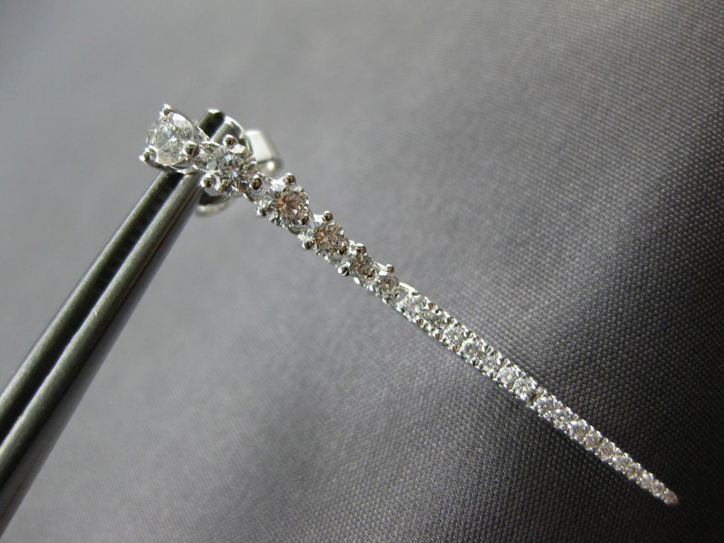 ESTATE 18KT WHITE GOLD DROP EARRINGS. 3D CLASSIC GRADUATING DESIGN. ROUND DIAMONDS ARE F/G COLOR, VSSI CLARITY .87 CARATS. MEASURES 37mm X 4mm. WRITTEN APPRAISAL AVAILABLE. COMES IN A PRESENTABLE GIFT BOX.