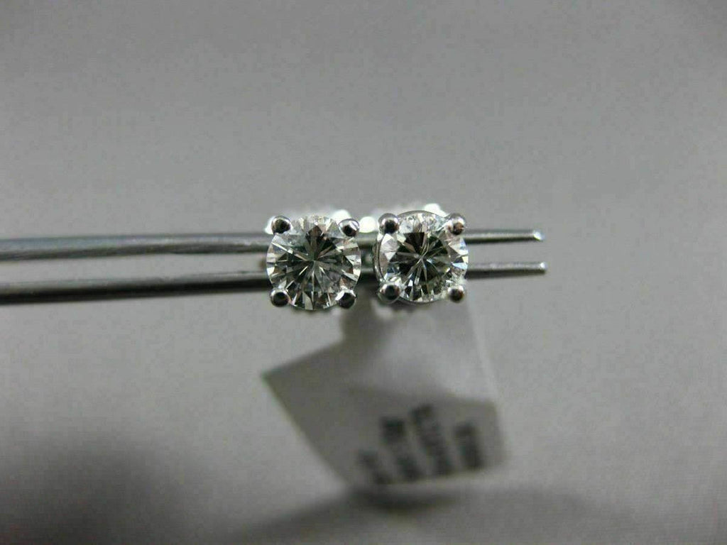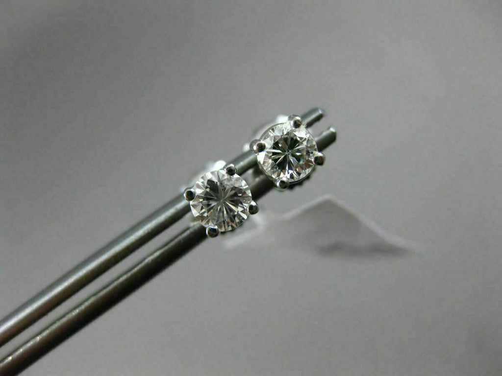 ESTATE .87CT ROUND DIAMOND 14K WHITE GOLD CLASSIC 4 PRONG SOLITARE STUD EARRINGS