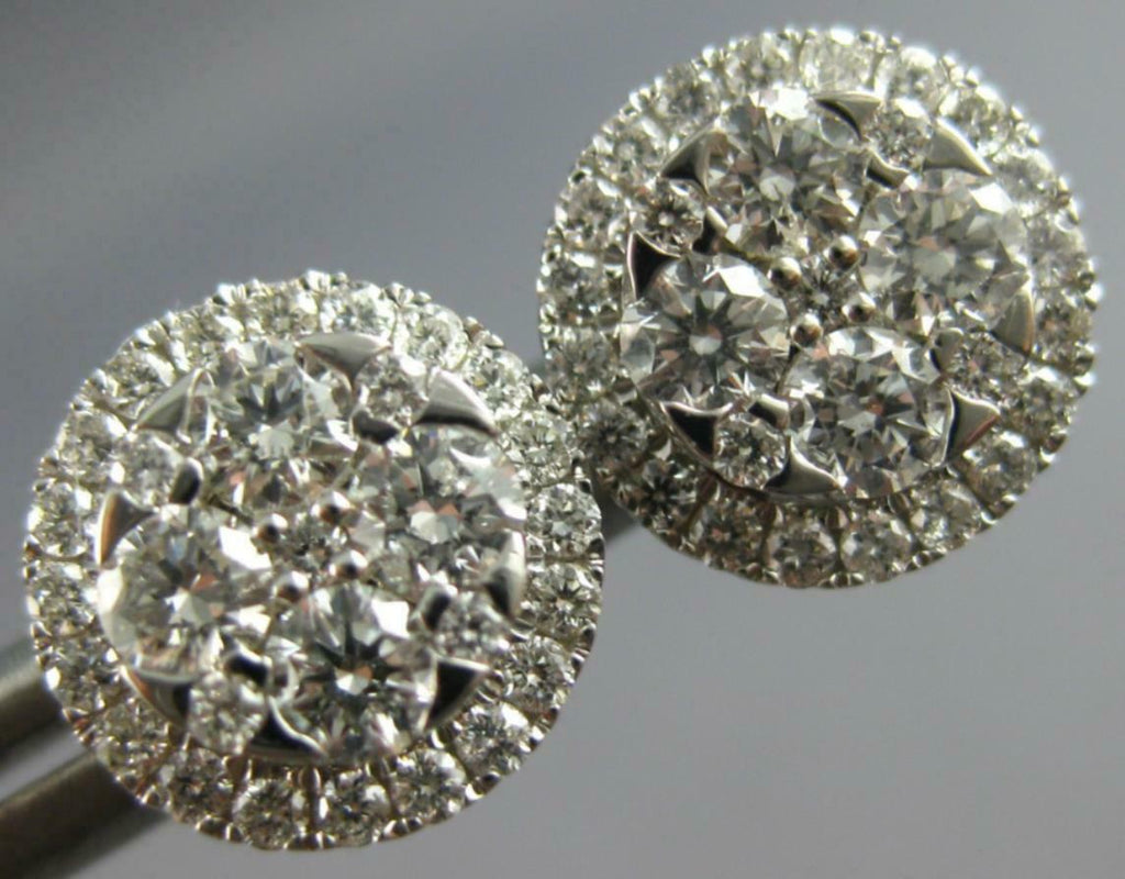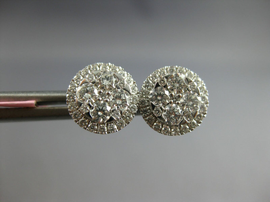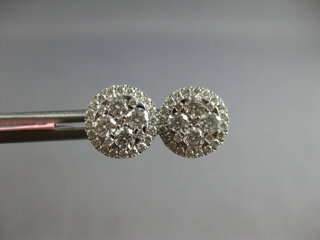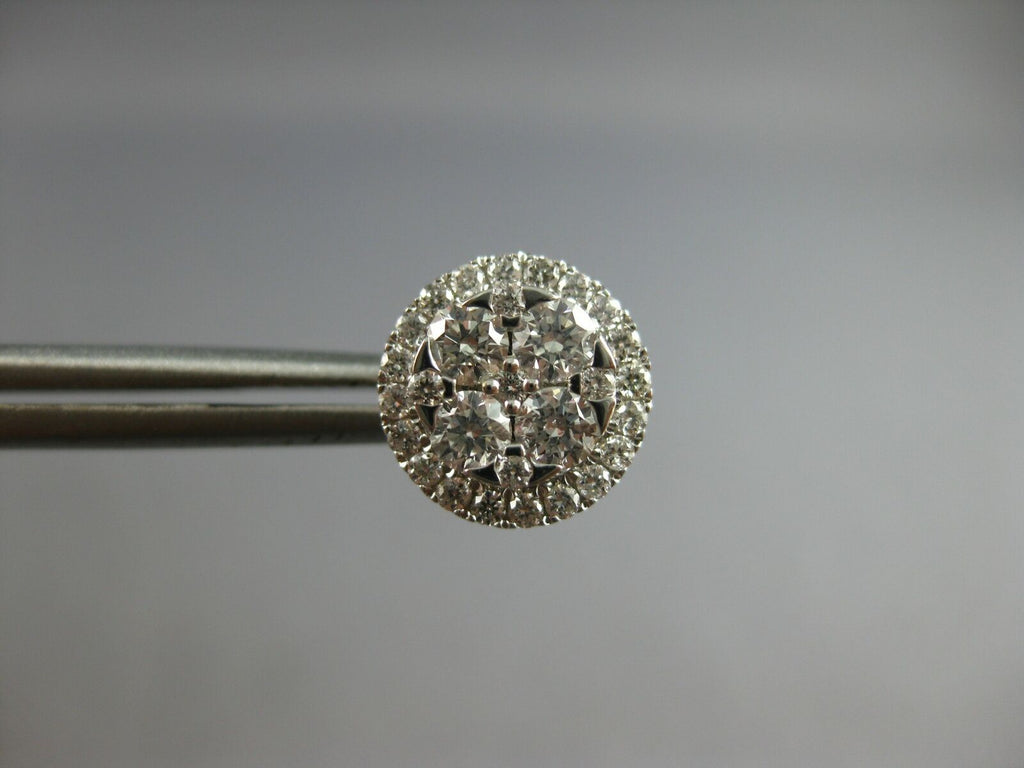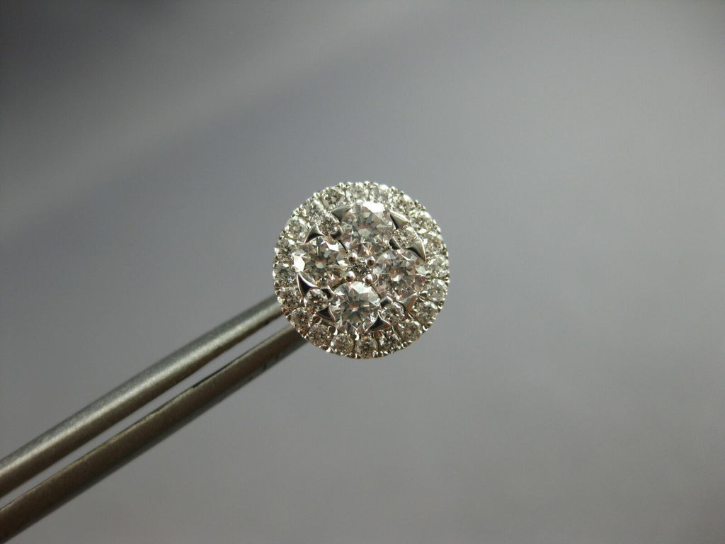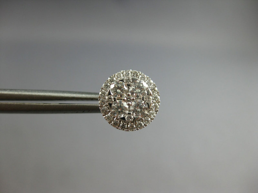 ESTATE .89CT DIAMOND 14KT WHITE GOLD 3D CLASSIC ROUND CLUSTER HALO STUD EARRINGS