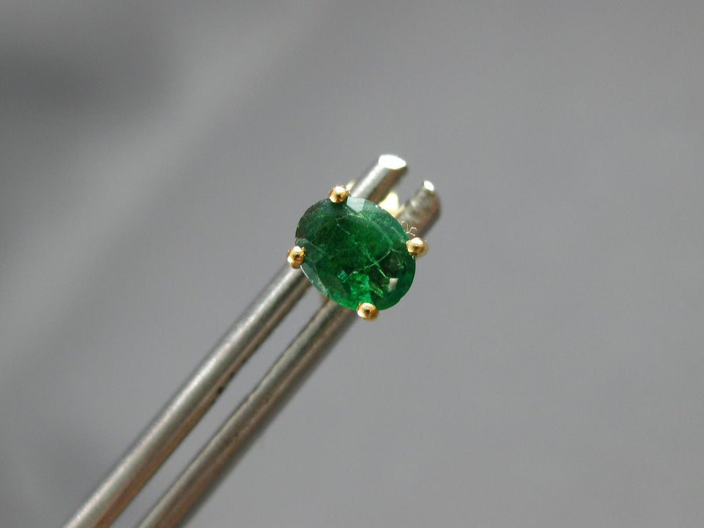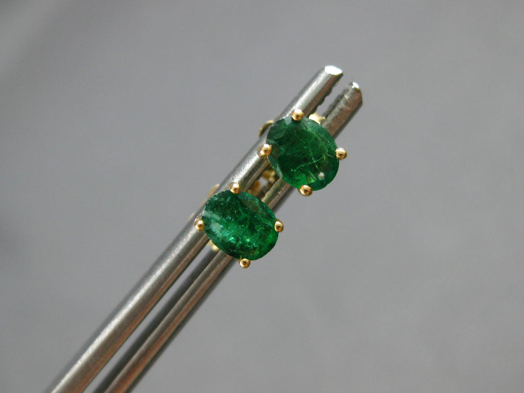 ESTATE .90CT AAA EMERALD 14KT YELLOW GOLD 3D OVAL SOLITAIRE STUD EARRINGS #27587